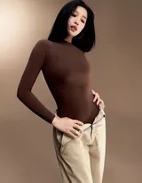 穿搭是此次写真的另一大亮点。紧身衣,尤其是短款设计,成为展现上身曲线的关键。它如同第二层皮肤,精确地描摹出肩线、锁骨与腰身的起伏。虞书欣选择了多种色彩的紧身单品,从经典黑白到柔和裸色,在不同光线下呈现细腻质感。而下身搭配的各类长裤则丰富了造型的层次——高腰阔腿裤拉长腿部比例,营造洒脱气场;修身牛仔长裤凸显笔直腿型,注入利落时髦感;垂感十足的西裤则带来流动的线条。这一上一下的搭配哲学,在“紧”与“松”、“露”与“遮”之间取得精妙平衡,将视觉焦点牢牢锁定在优越的身材比例和那堪称完美的小蛮腰上。